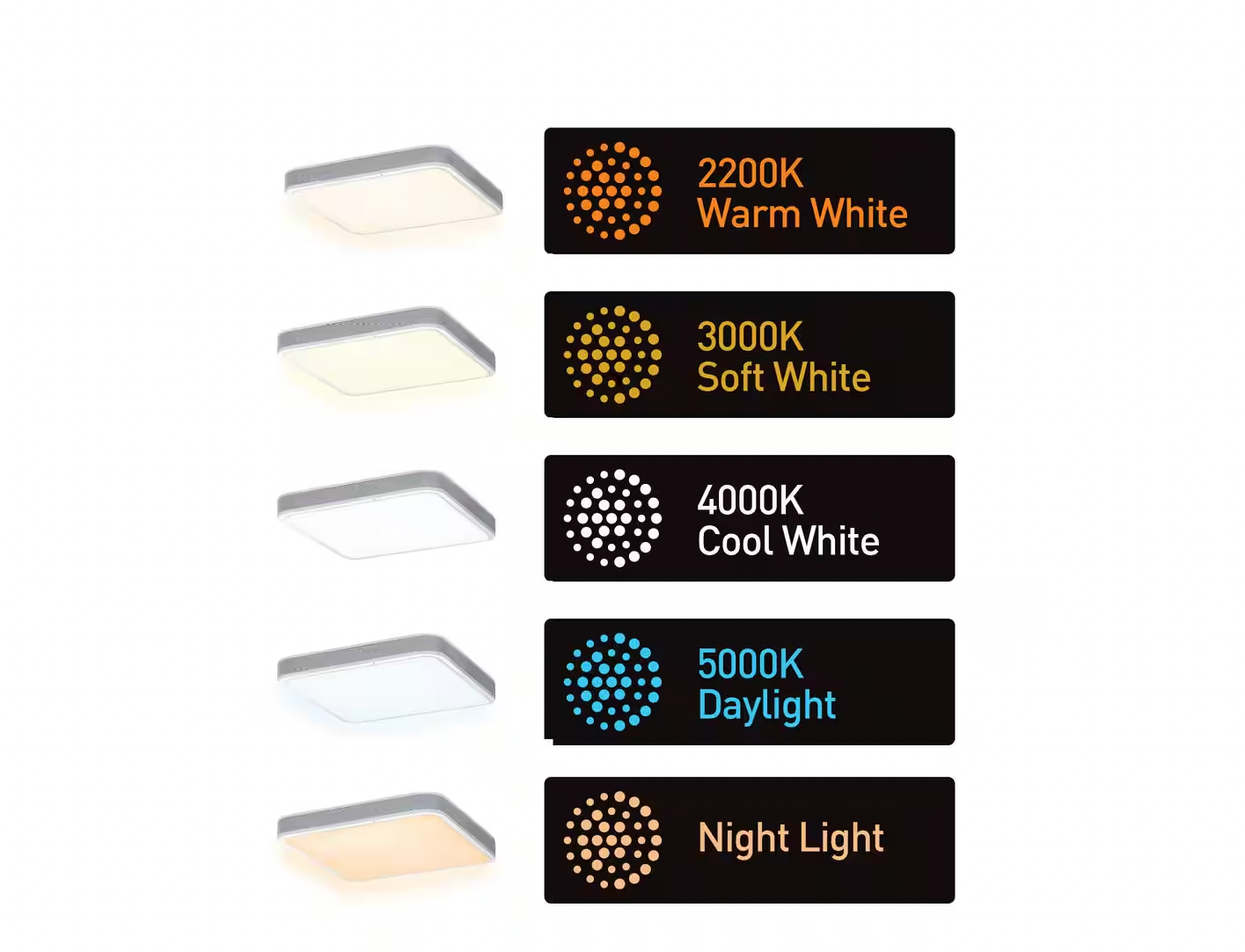 Color of light can be adjusted to 2200K warm white, 3000K soft white, 4000K cool white, or 5000K daylight